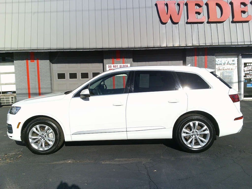 2019 Audi Q7 55 Premium White *Bluetooth, Hands-Free*, *USB / AUX Inputs to play music*, *Backup Camera*, *Sunroof / Moonroof*, *Heated Front Seats*, *Leather Seats*, *Premium Wheels*, *Split Folding Rear Seats*, *Non Smoker*, *LOW MILES*, *AWD*, 10 Speakers, 4-Wheel Disc Brakes, ABS brakes, Air Conditioning, AM/FM radio: SiriusXM, Automatic temperature control, Bumpers: body-color, CD player, Dual front impact airbags, Dual front side impact airbags, Four wheel independent suspension, Front dual zone A/C, Memory seat, Navigation system: MMI Navigation plus, Power driver seat, Power steering, Power windows, Radio data system, Radio: Audi MMI Navigation Plus, Rear air conditioning, Rear window defroster, Remote keyless entry, Speed-sensing steering, Steering wheel memory, Steering wheel mounted audio controls, Traction control.
