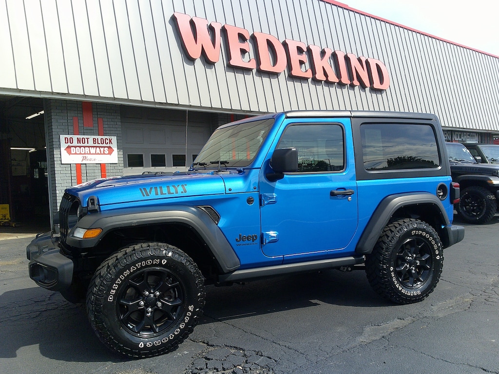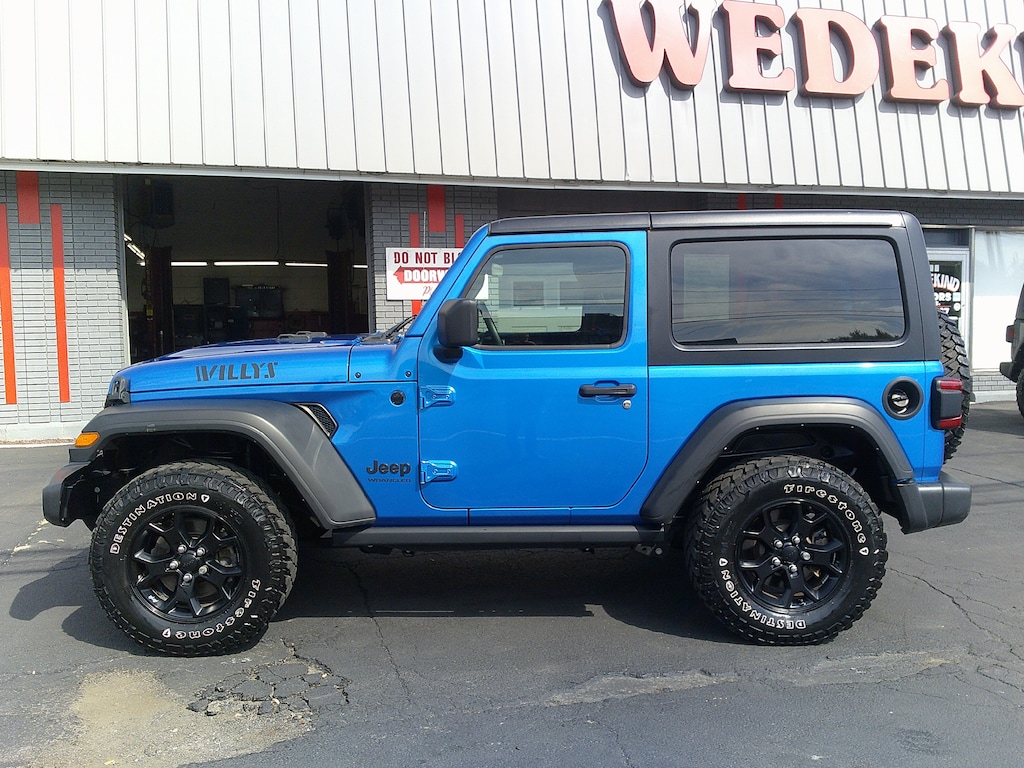 THIS IS THE ONE.. WILLYS, STICK SHIFT, V6, TECH GROUP, COLD WEATHER GROUP, LOW MILES, CLEAN CARFAX, THIS ONE CHECKS ALL THE BOXES! 2021 Jeep Wrangler Willys Hydro Blue Pearl Coat CARFAX One-Owner. *Balance of Manufacture Warranty*, *Bluetooth, Hands-Free*, *USB / AUX Inputs to play music*, *GPS Navigation w/ Backup Camera*, *Heated Front Seats*, *Premium Wheels*, *Split Folding Rear Seats*, *Non Smoker*, *LOW MILES*, 1-Yr SiriusXM Guardian Trial, 220 Amp Alternator, 4-Wheel Drive Swing Gate Decal, 4G LTE Wi-Fi Hot Spot, 5-Year SiriusXM Traffic Service, 5-Year SiriusXM Travel Link Service, 7.0" Touchscreen Display, 8.4" Radio & Premium Audio Group, 8.4" Touchscreen Display, 97 MPH Vehicle Max Speed Calibration, Advanced Brake Assist, Advanced Safety Group, Air Conditioning, Air Conditioning w/Auto Temperature Control, Air Filtering, Alpine Premium Audio System, Anti-Spin Differential Rear Axle, Apple CarPlay, Auto High Beam Headlamp Control, Auto-Dimming Rear-View Mirror, Automatic Headlamps, Black Grille, Black Trail Rated Badge, Blind Spot & Cross Path Detection, Cluster 7.0" TFT Color Display, Cold Weather Group, Convenience Group, Deep Tint Sunscreen Windows, Emergency/Assistance Call, For Details, Visit DriveUconnect.com, For More Info Call 800-643-2112, Front 1-Touch Down Power Windows, Front LED Fog Lamps, Full Speed Forward Collision Warning Plus, Google Android Auto, GPS Antenna Input, GPS Navigation, HD Radio, Heated Front Seats, Heated Steering Wheel, Injection Molded Black Rear Bumper, Integrated Center Stack Radio, Leather Wrapped Steering Wheel, LED Headlamp & Fog Lamp Group, LED Premium Reflector Headlamps, LED Taillamps, Matte Black Jeep Badge, Mold In Color Bumper w/Gloss Black, MOPAR All-Weather Floor Mats, Off-Road Info Pages, ParkSense Rear Park Assist System, Power Heated Mirrors, Quick Order Package 23W Willys, R1234YF A/C Refrigerant, Radio: Uconnect 4 w/7" Display, Radio: Uconnect 4C Nav w/8.4" Display, Remote Keyless Entry, Safety Group, Security Alarm, SiriusXM Radio Service, SiriusXM Satellite Radio, SiriusXM Traffic Plus, SiriusXM Travel Link, Speed Sensitive Power Locks, Sun Visors w/Illuminated Vanity Mirrors, Technology Group, Universal Garage Door Opener, USB Host Flip, Wheels: 17" x 7.5" Moab Black Aluminum, Willys, Willys Hood Decal, Wrangler Decal.