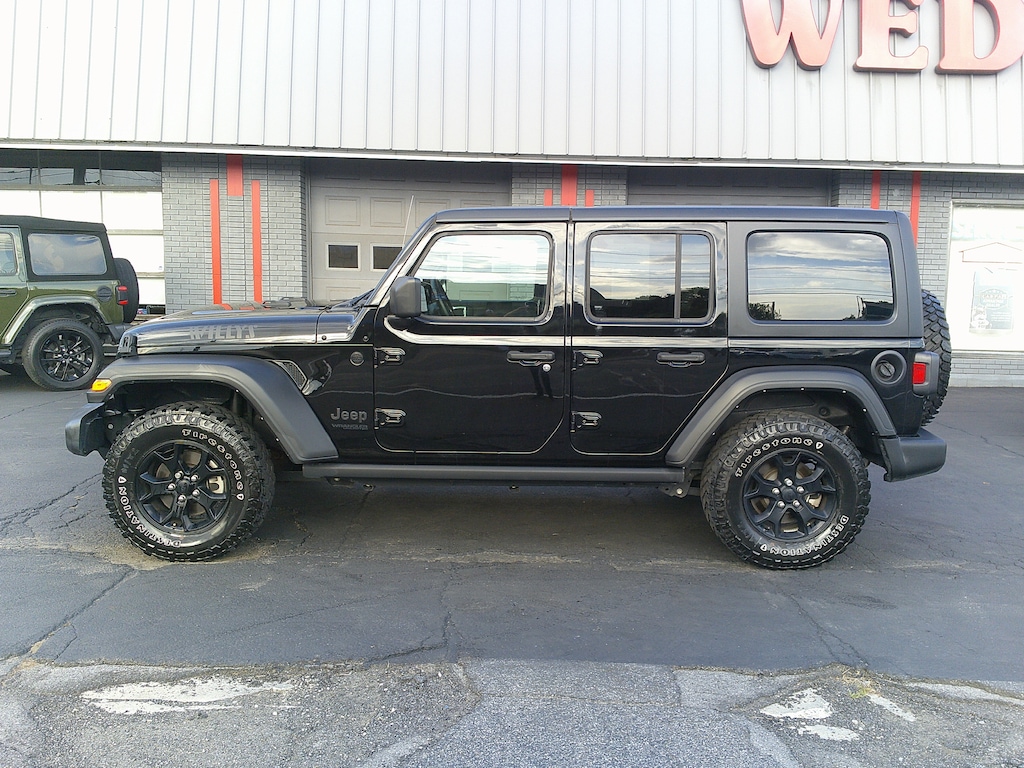 2021 Jeep Wrangler Unlimited Willys Black Clearcoat CARFAX One-Owner. Clean CARFAX. *Balance of Manufacture Warranty*, *Bluetooth, Hands-Free*, *USB / AUX Inputs to play music*, 4-Wheel Drive Swing Gate Decal, 8 Speakers, Air Conditioning, AM/FM radio, Anti-Spin Differential Rear Axle, Automatic Headlamps, Black Grille, Black Trail Rated Badge, Convenience Group, Deep Tint Sunscreen Windows, Front 1-Touch Down Power Windows, Front LED Fog Lamps, Leather Wrapped Steering Wheel, LED Headlamp & Fog Lamp Group, LED Premium Reflector Headlamps, Matte Black Jeep Badge, Mold In Color Bumper w/Gloss Black, MOPAR All-Weather Floor Mats (DISC), Power Heated Mirrors, Quick Order Package 25W Willys (DISC), Rear Window Defroster, Remote Keyless Entry, Security Alarm, Speed Sensitive Power Locks, Sun Visors w/Illuminated Vanity Mirrors, Universal Garage Door Opener, Wheels: 17" x 7.5" Moab Black Aluminum, Willys, Willys Hood Decal, Wrangler Decal.