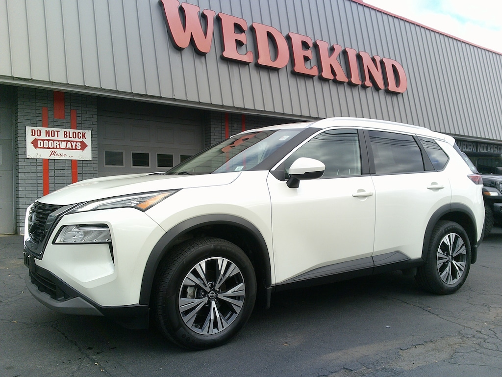 2023 Nissan Rogue SV Pearl White Tricoat CARFAX One-Owner. *Balance of Manufacture Warranty*, *Bluetooth, Hands-Free*, *USB / AUX Inputs to play music*, *Panoramic Moonroof*, *Heated Front Seats*, *Premium Wheels*, *Split Folding Rear Seats*, *Non Smoker*, *LOW MILES*, 6 Speakers, Air Conditioning, AM/FM Radio, AM/FM radio: SiriusXM, Automatic temperature control, Four wheel independent suspension, Front dual zone A/C, Heated Driver & Front Passenger Seats, Heated Leather Wrapped Steering Wheel, Leatherette Door Trim Inserts w/Stitch, Panoramic Moonroof, Power driver seat, Power Liftgate, Power steering, Power windows, PRIMATEX Leatherette Seat Trim (DISC), Radio data system, Rear Door Sunshades, Rear Personal Lights, Rear window defroster, Remote keyless entry, Silver Painted Roof Rails, Steering wheel mounted audio controls, SV Premium Package (DISC), Traction control.